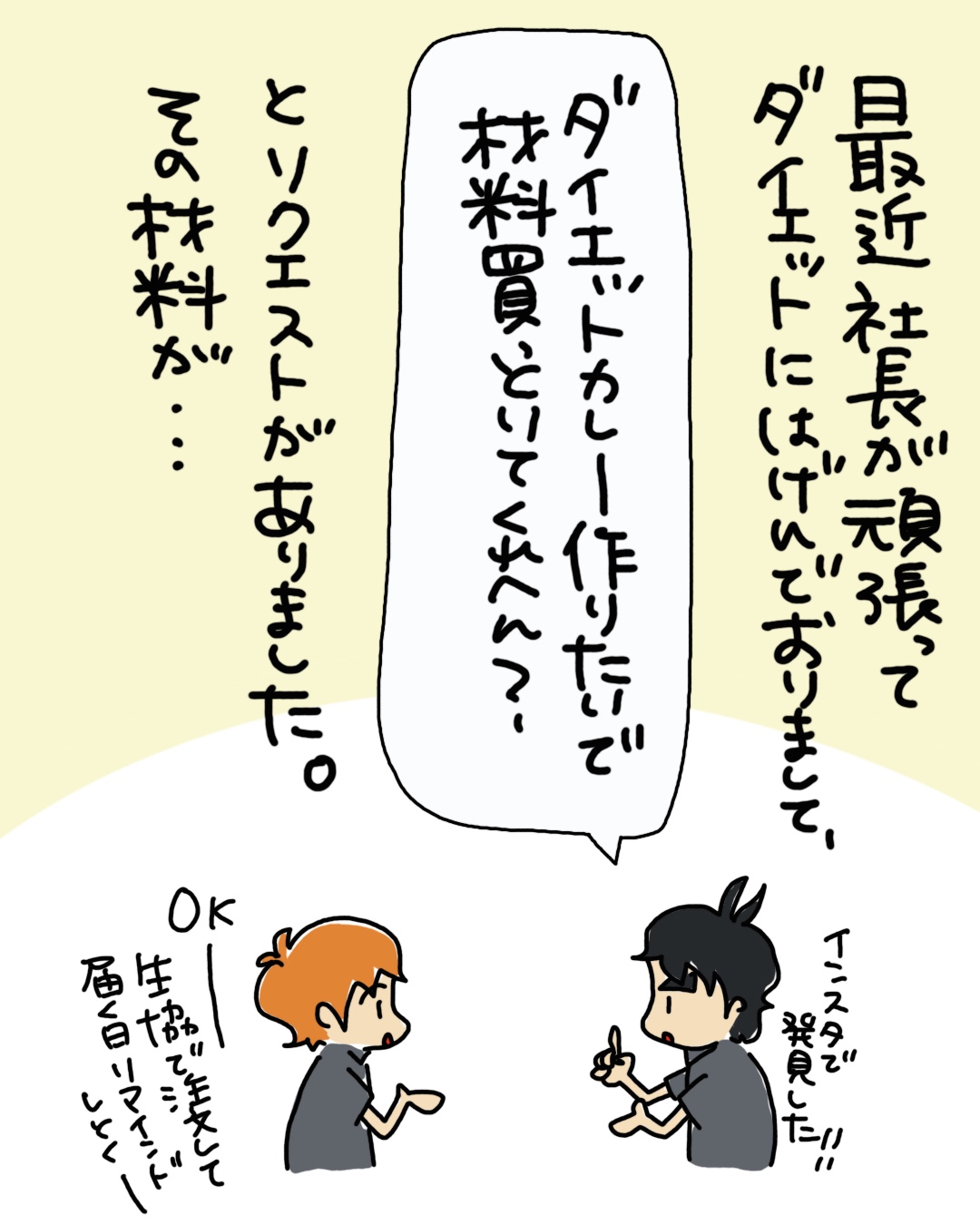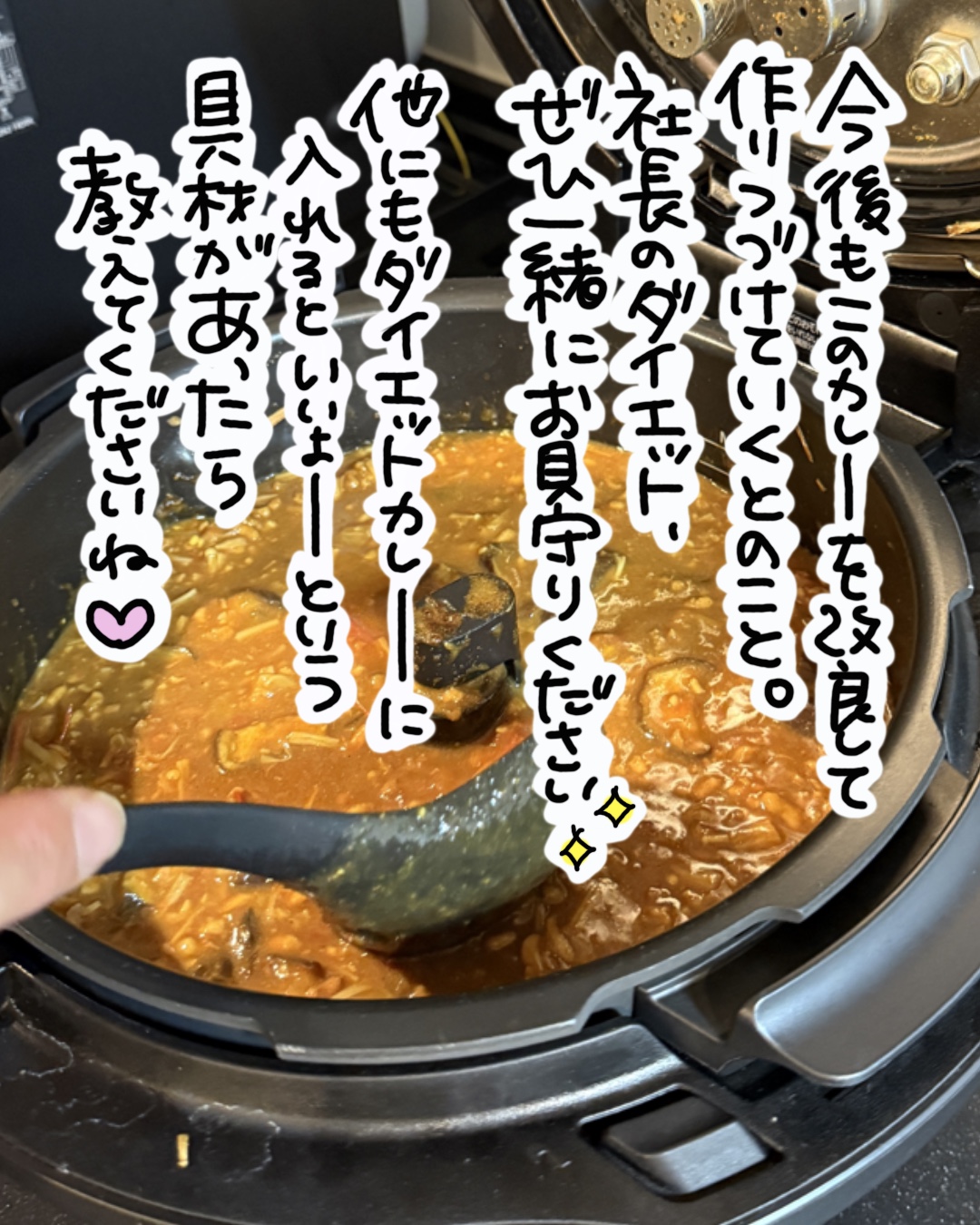 このカレー、なくなったら次も作るそうなので、他にもダイエットになる材料があればぜひ教えてください♪