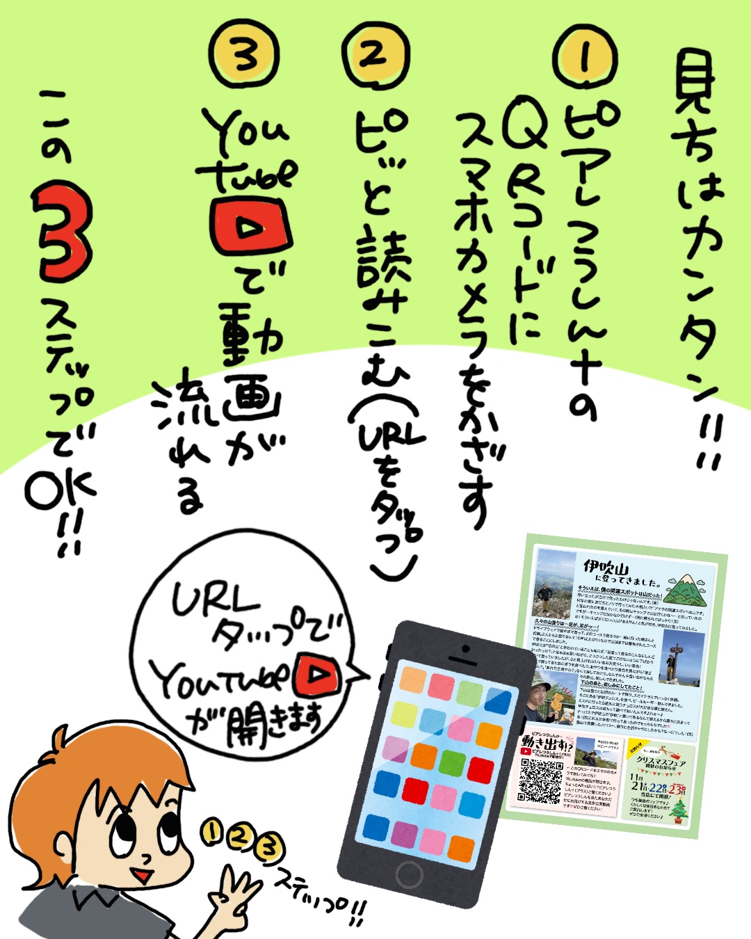 いつもは紙でお届けしているピアレつうしんが、スマホのカメラをQRコードにかざして読み込むだけで、Youtubeで動画が動き出す!