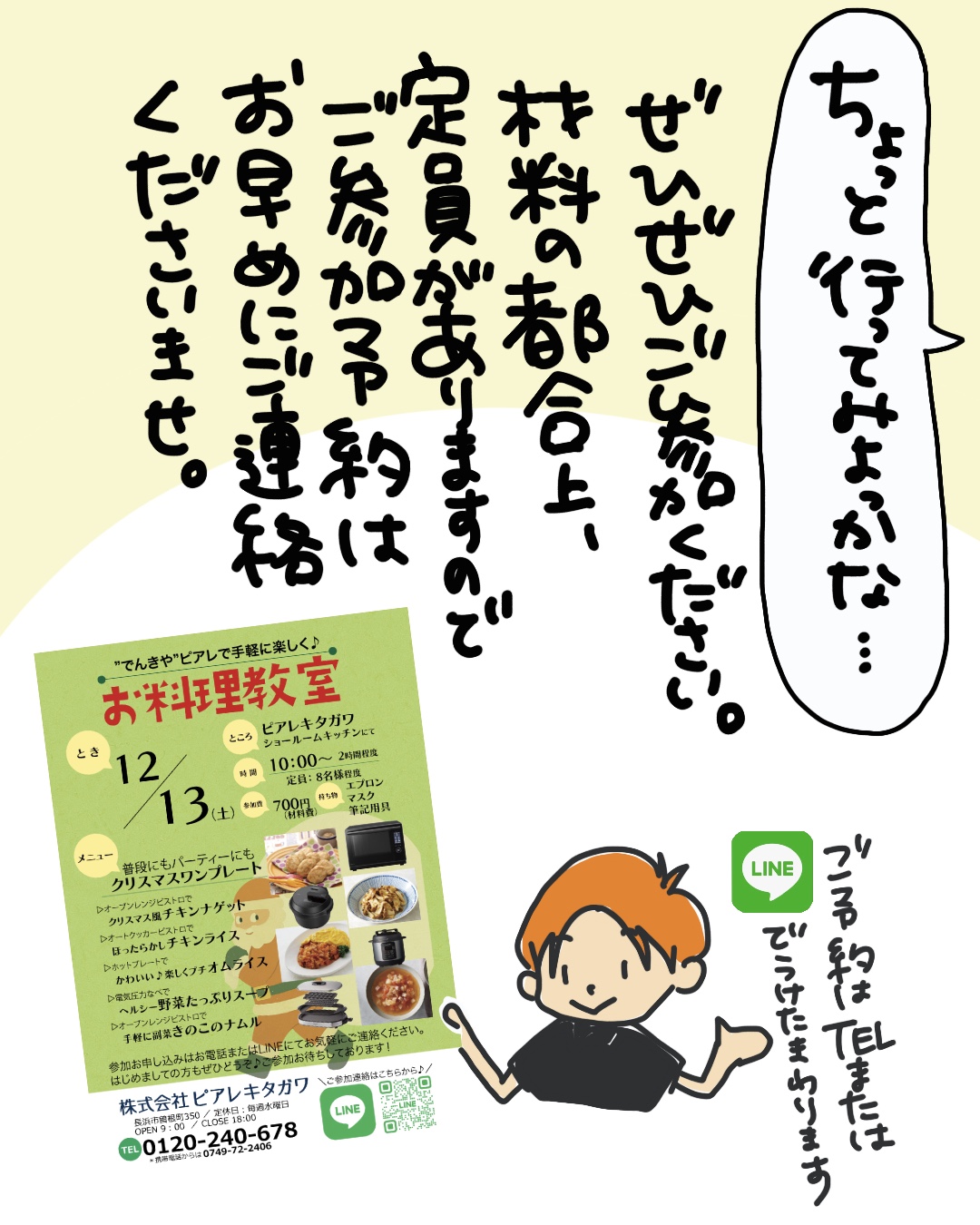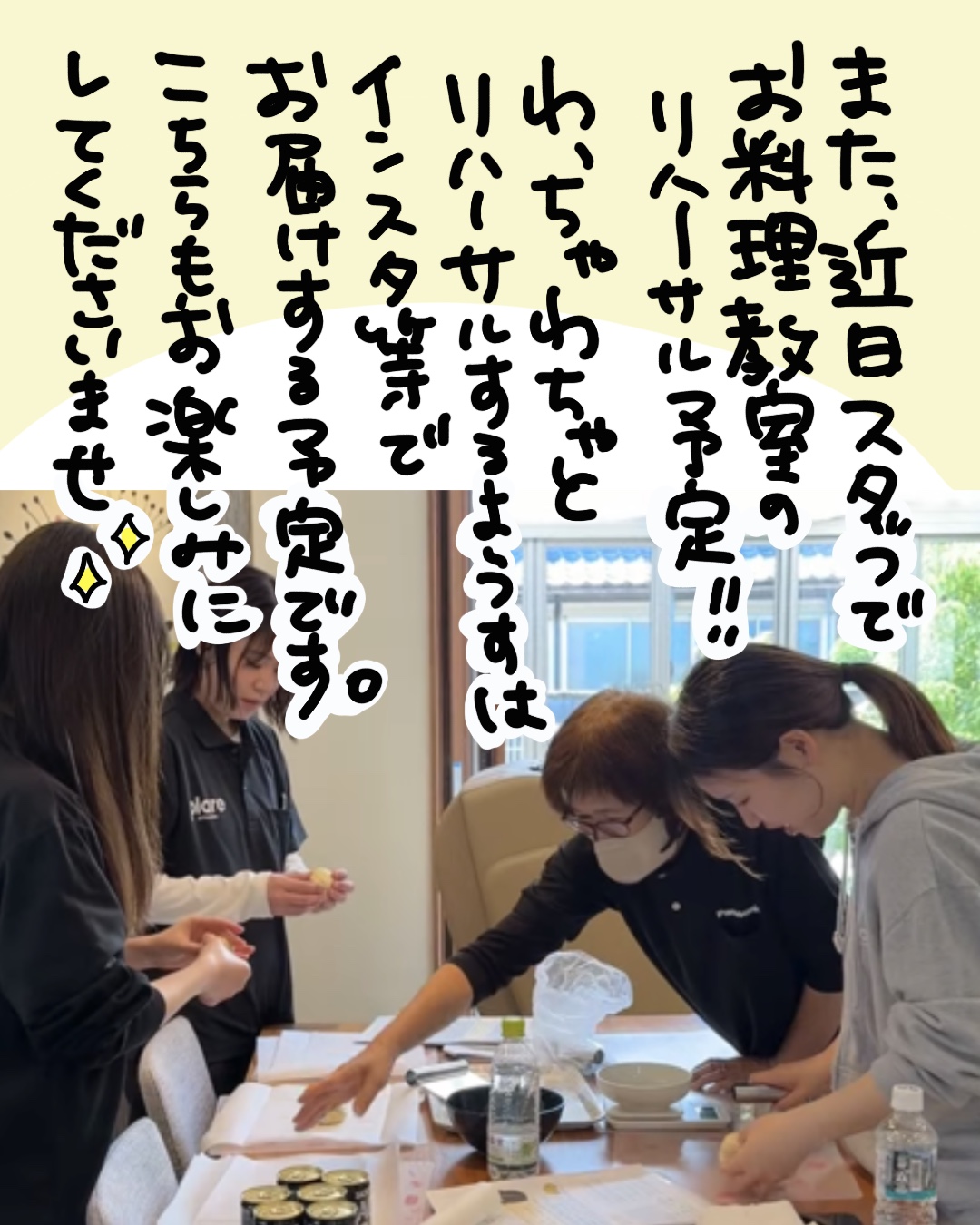 楽しくお料理できるのを、スタッフも楽しみにお待ちしております♡