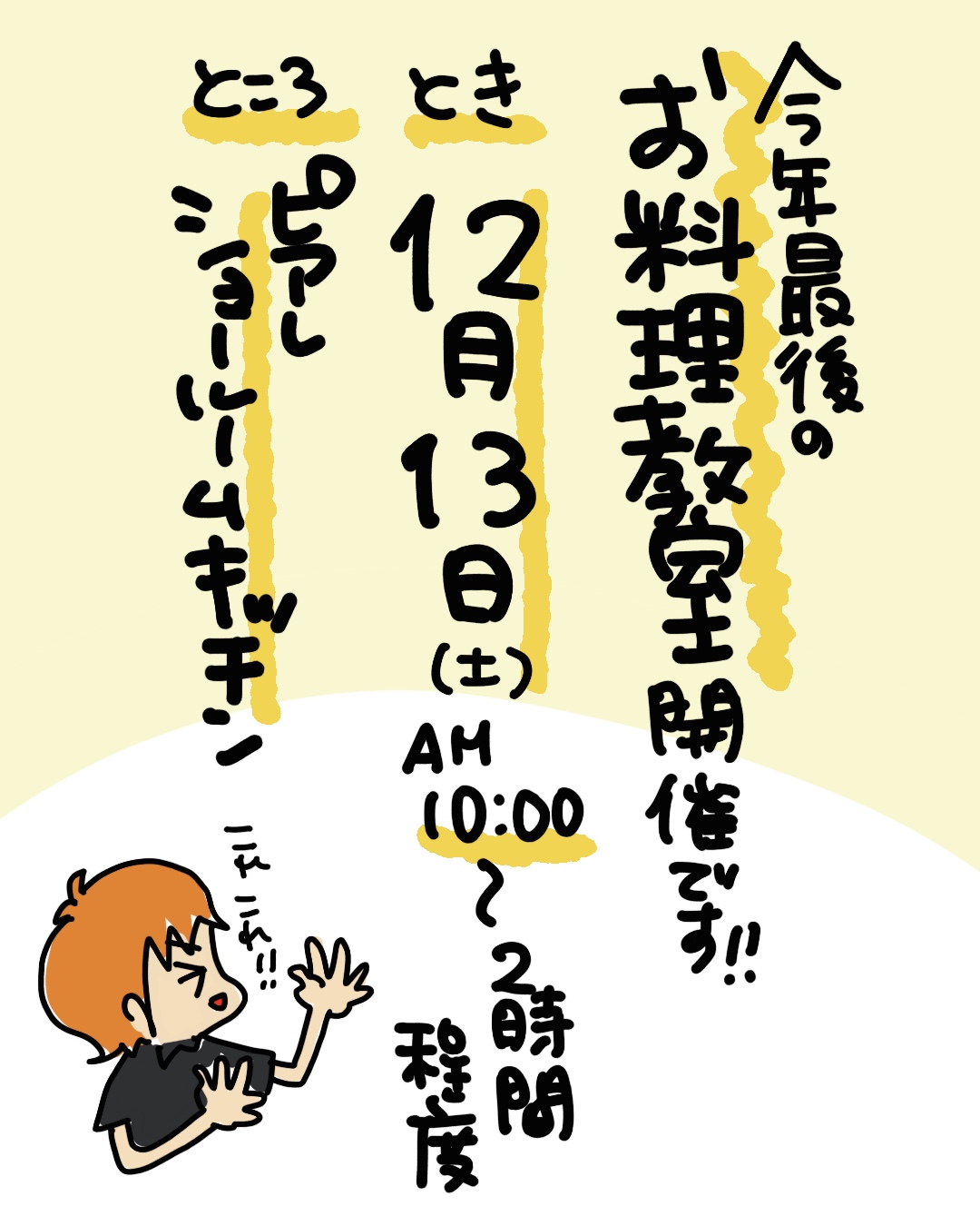 12月に開催する、今年最後のお料理教室のご案内をお届けします♪