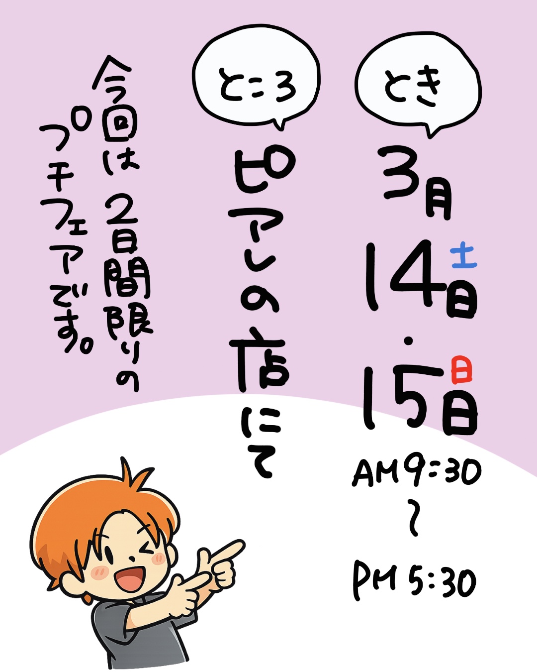 そんなバレンタインから1か月後の3月、ピアレで今年最初のフェアを開催します♪