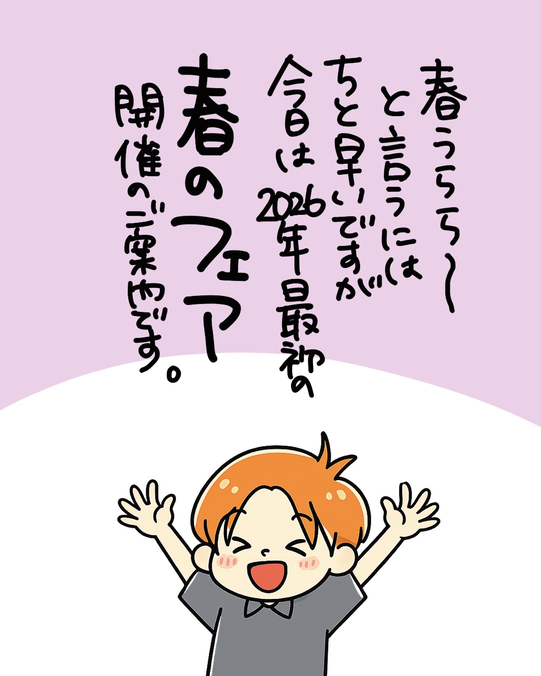 今回の春のフェアは”プチ”フェアとして、いつもよりこじんまり開催します♪